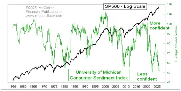 Consumer confidence seems to be at its nadir for the last 70 years, but the market keeps rising due to the endogenous stimulus of fiscal and monetary measures that can be afforded. The question, of course, is whether they can really be afforded, given the unsustainable debt levels in the US and abroad. And while there might be a bit more room for that stimuli, the employment growth numbers do not inspire confidence. Real purchasing power seems to be fragile, and cheap gasoline is not a panacea. If consumer confidence gives in, political power will feel the heat, and asset prices will be subjected to repricing. Recession might not be far away.